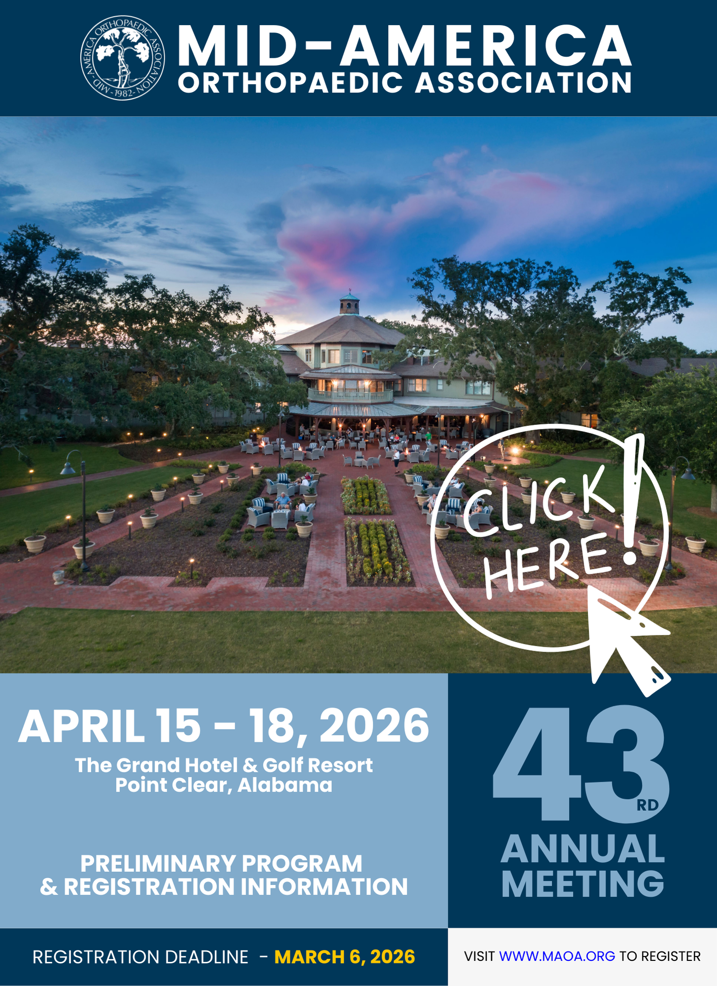MAOA is always looking to grow through the strength and engagement of our members, and we’d love to have you more involved. Whether you’ve served before or are looking for a new way to contribute, there are many ways to get connected. CLICK HERE for volunteer opportunities within Mid-America Orthopaedic Association.